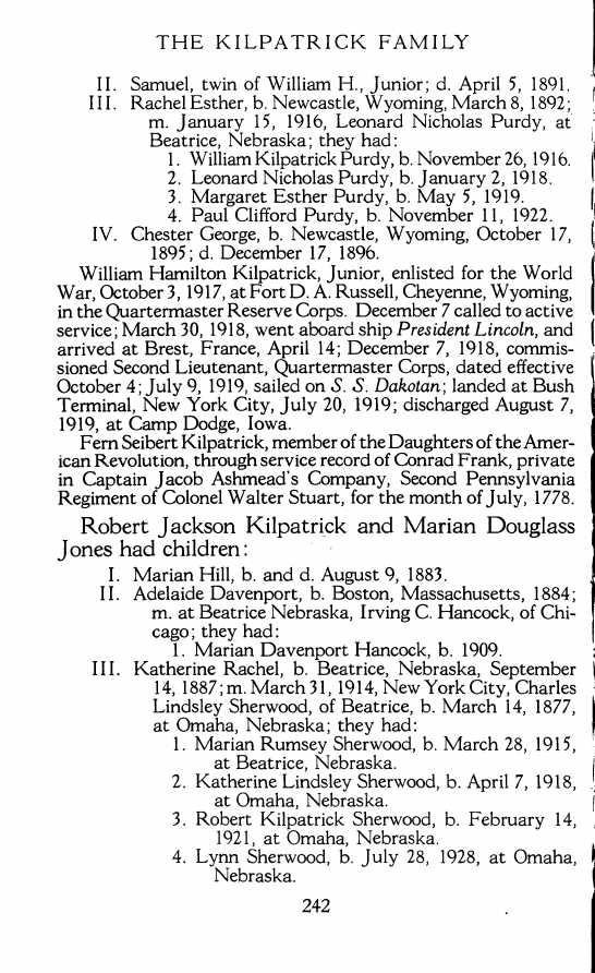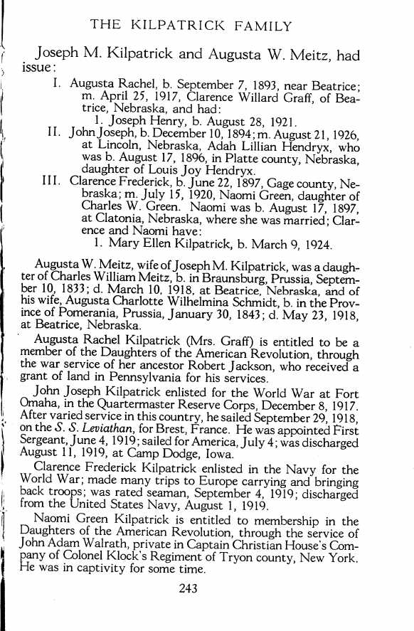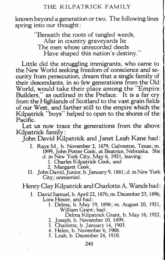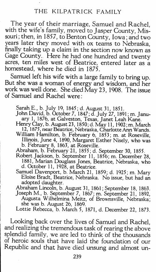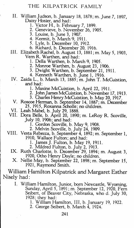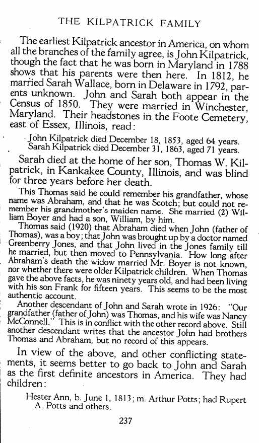 The KILPATRICK FAMILY :