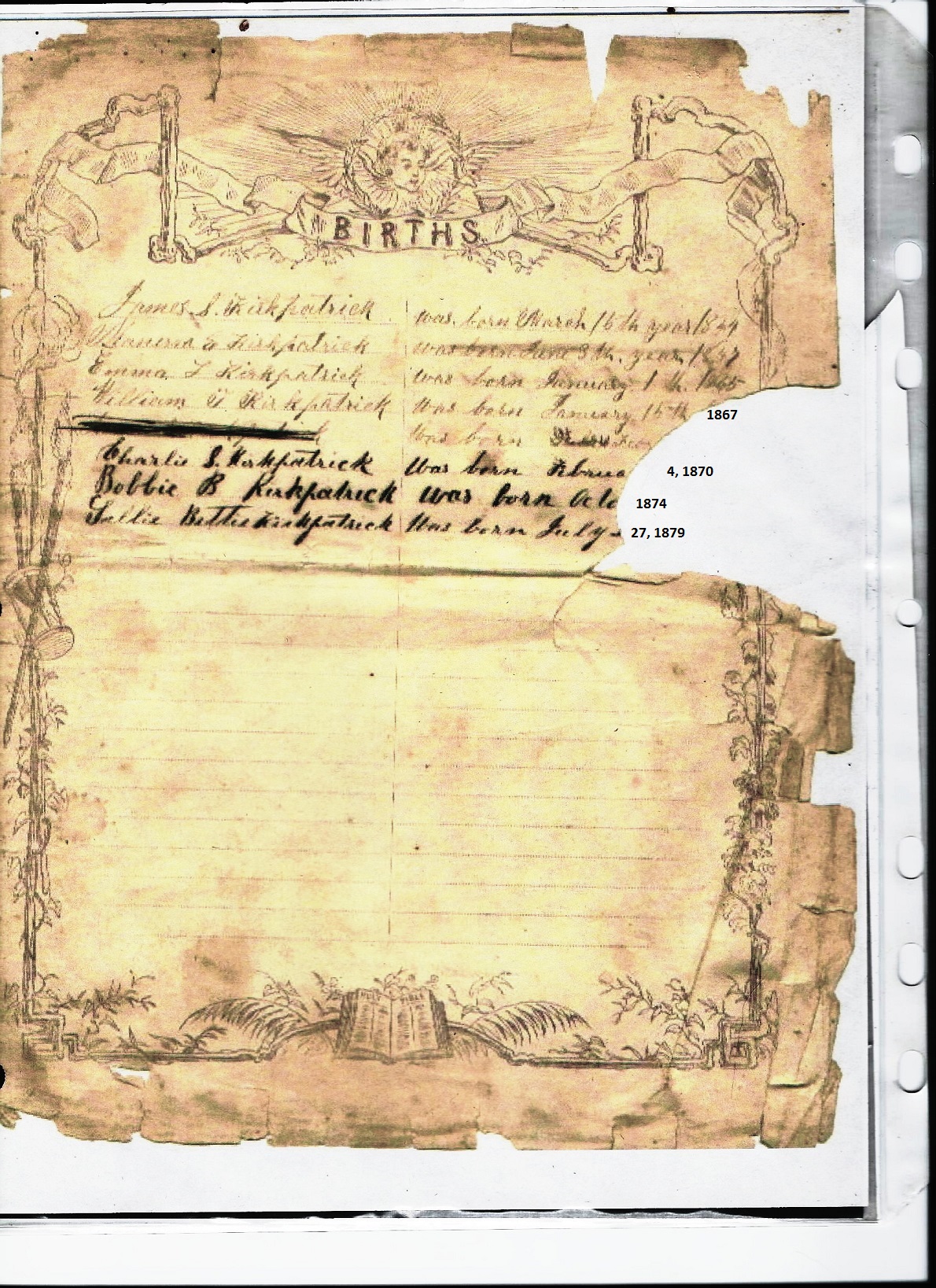 Pitt Family Bible containing Kirpatricks