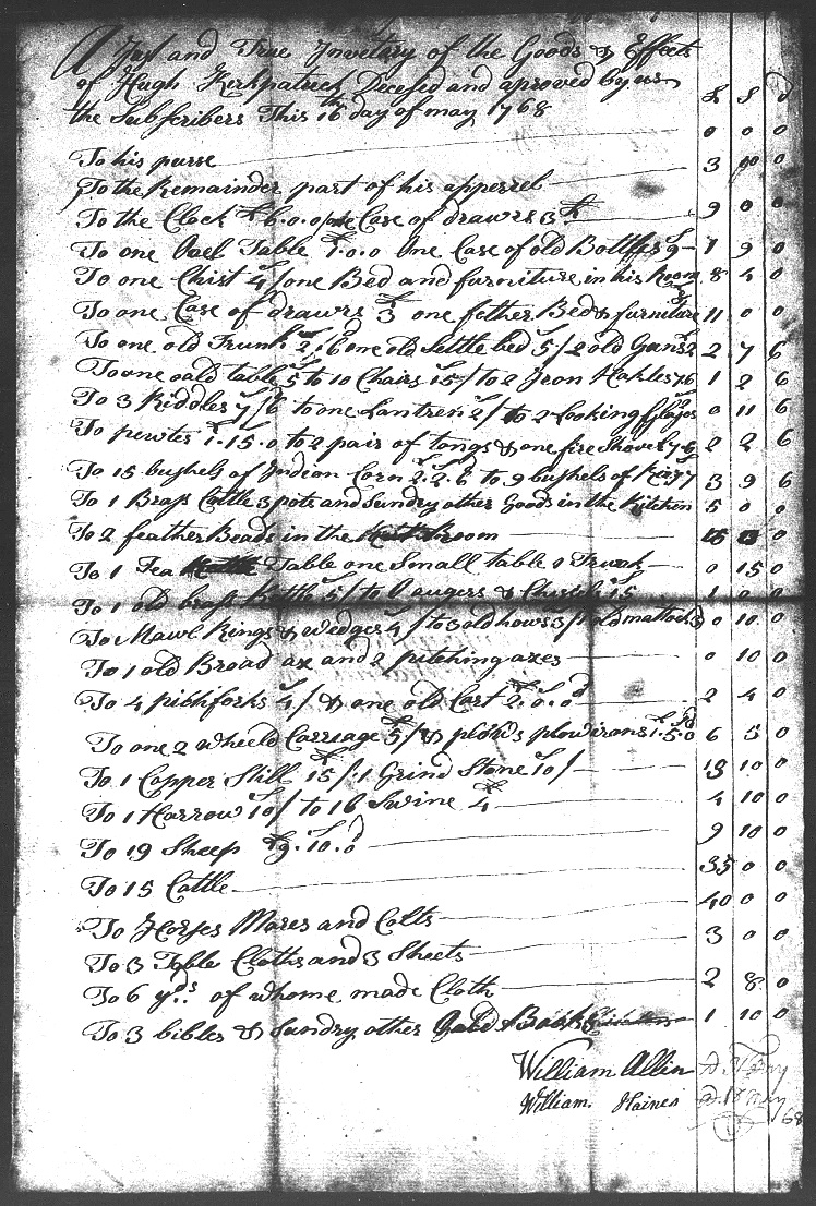 In 1733 Hugh testified in a ccourt case concerning a stolen bolt of cloth.