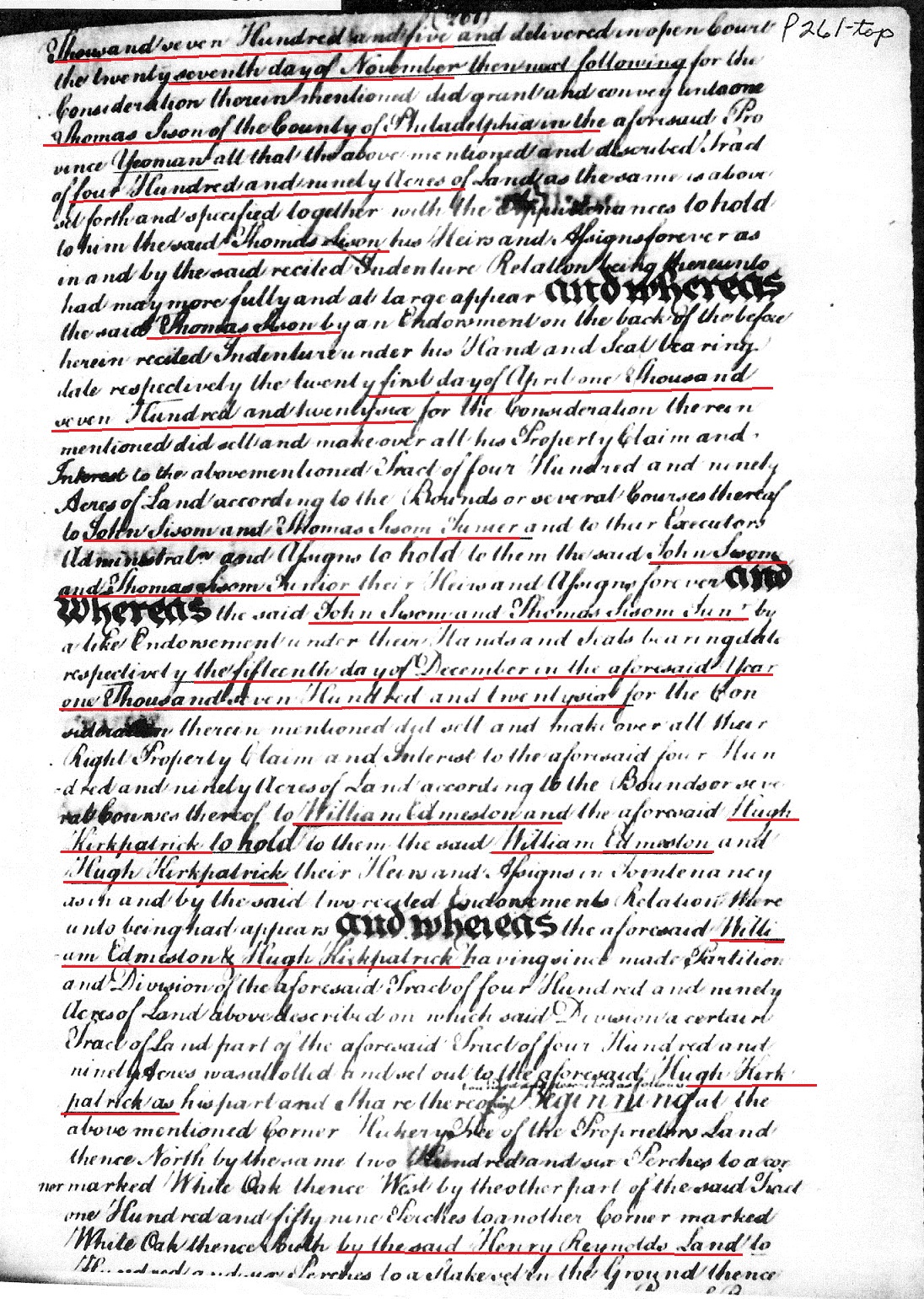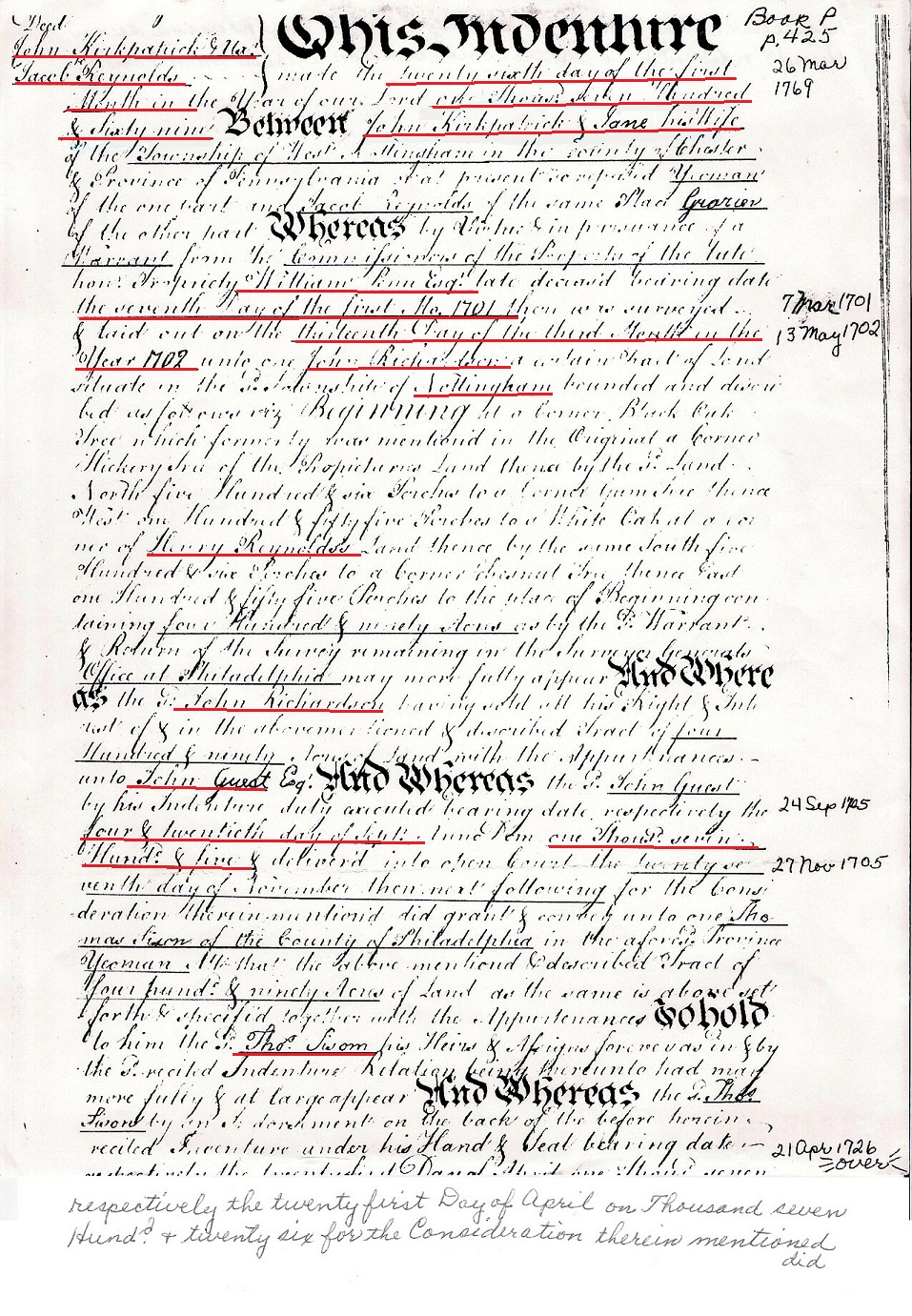 Later I read a deed from Hugh to his son John, this land had once belonged to John Richardson and was bordered by Henry Reynolds. Both of these men were original owners of 2 of the Nottingham Lots