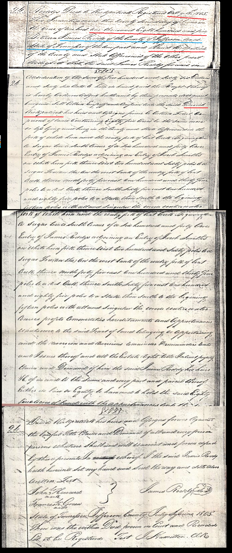The next record is a deed from James Roddy to David Kirkpatrick on 18 Oct., 1805.