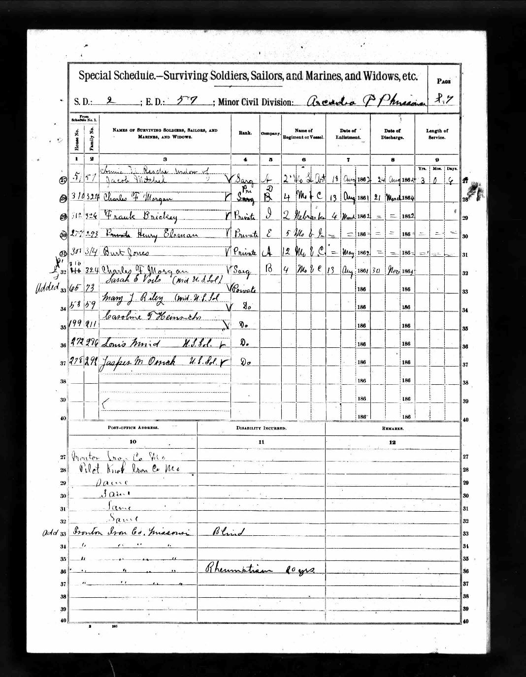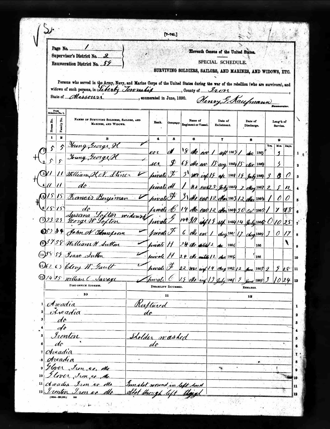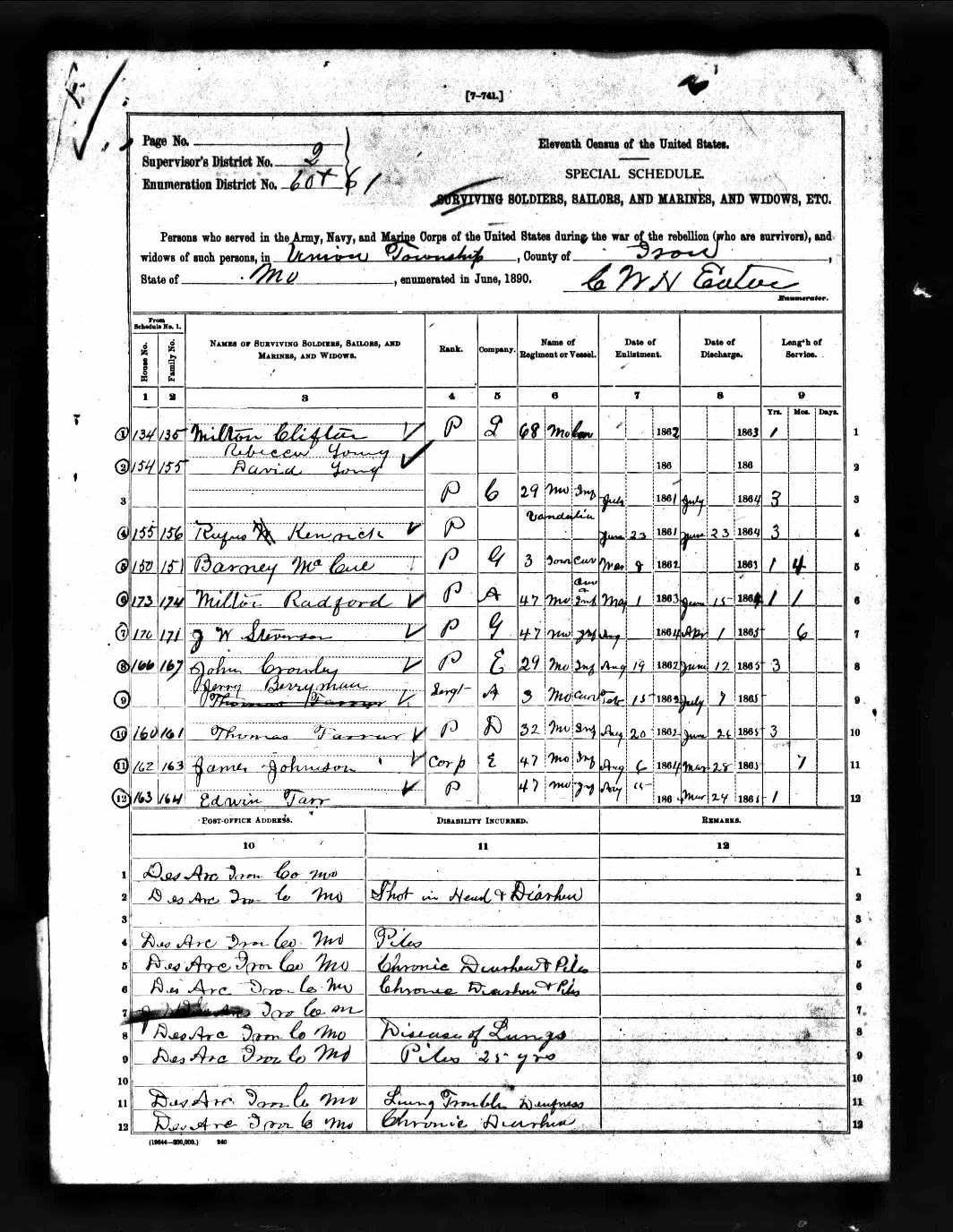 Victory, Cyrus J., 11 MO. Inf. Found on Union Township Page 6