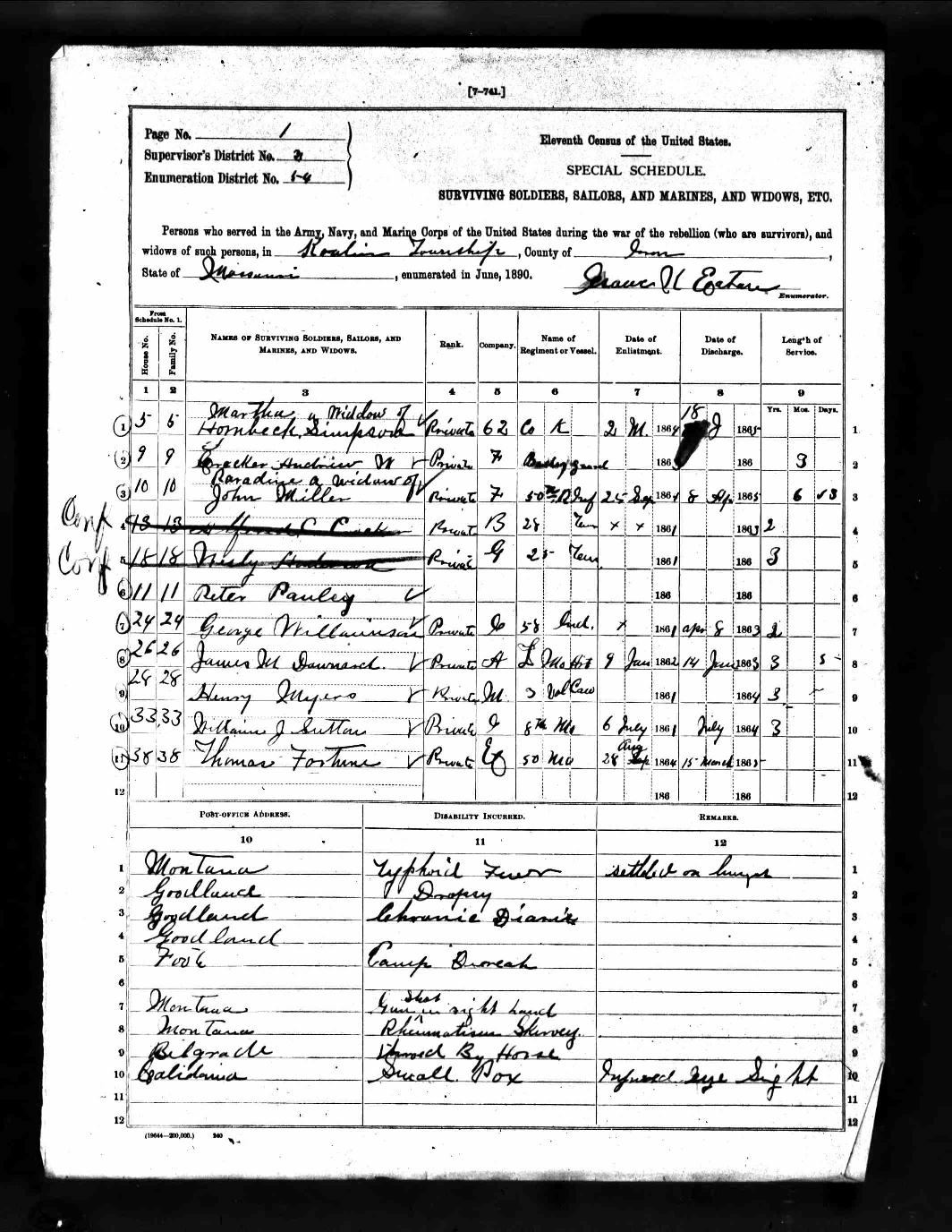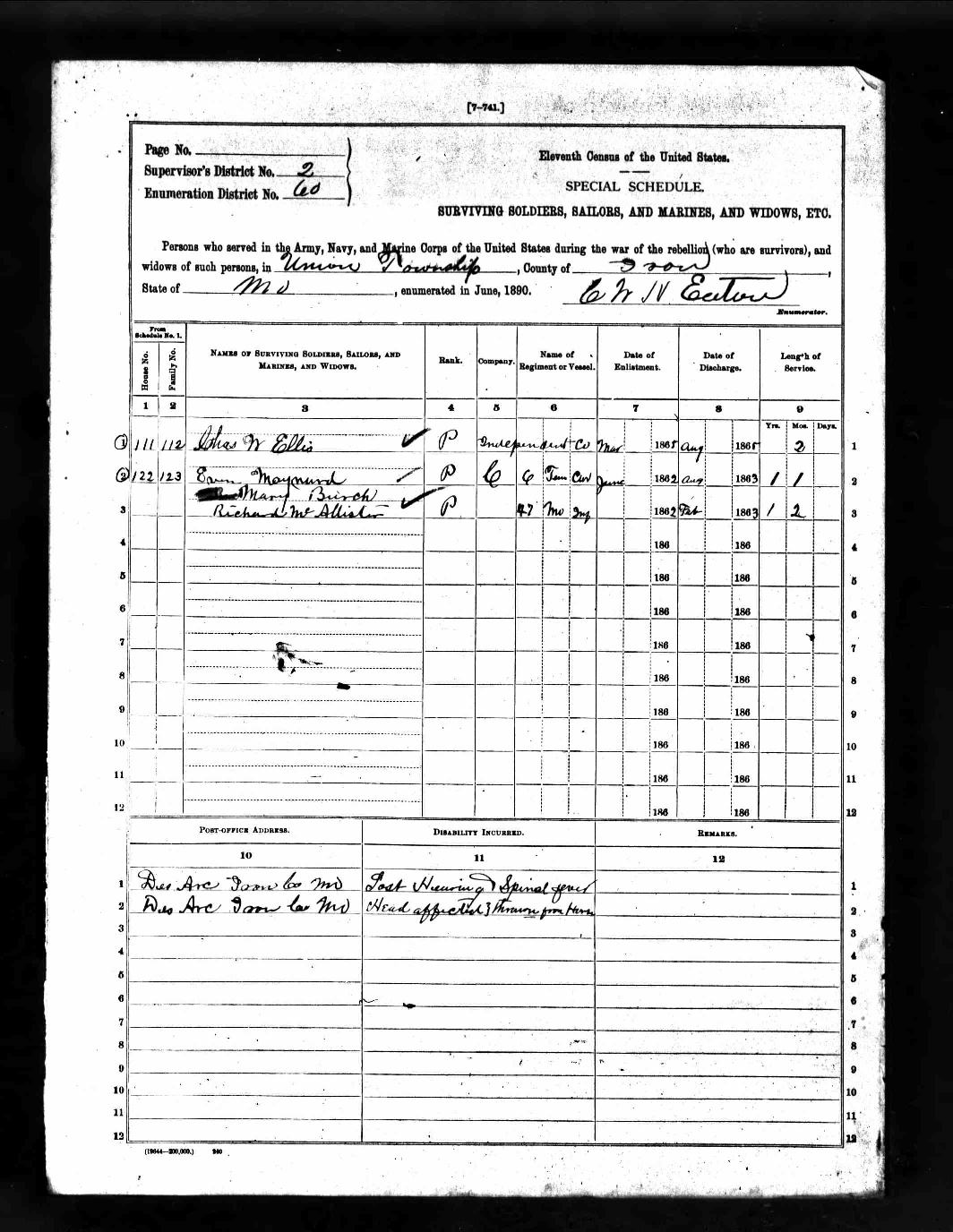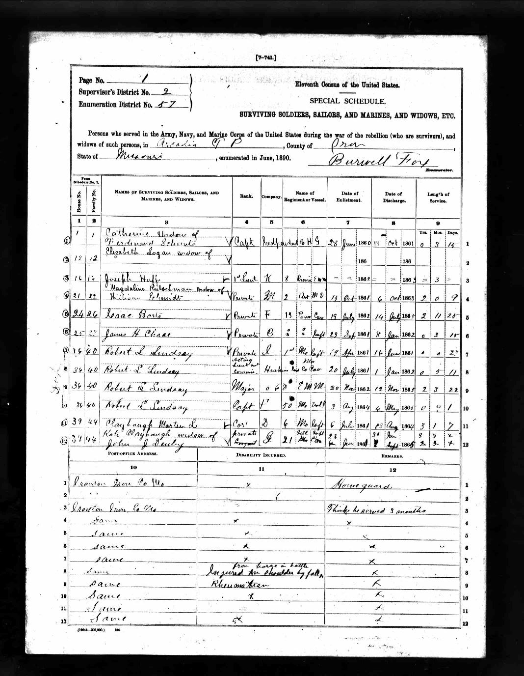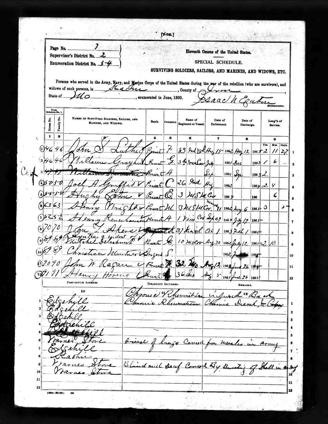 Victory, Cyrus J., 11 MO. Inf. Found on Union Township Page 6