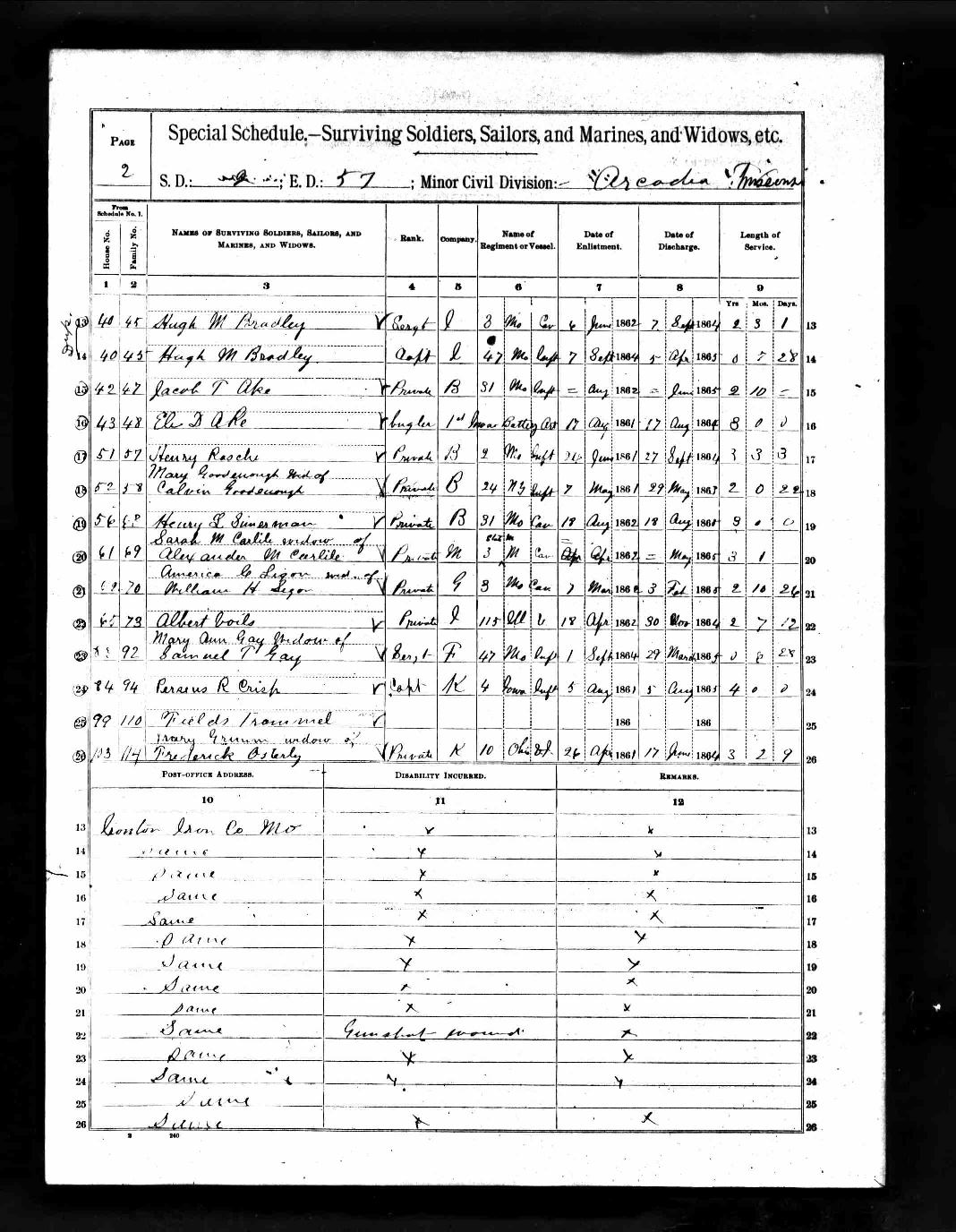 Bradley, Hugh M., 3 MO Cav, 47 MO Inf. Found on Arcadia Township Page 2