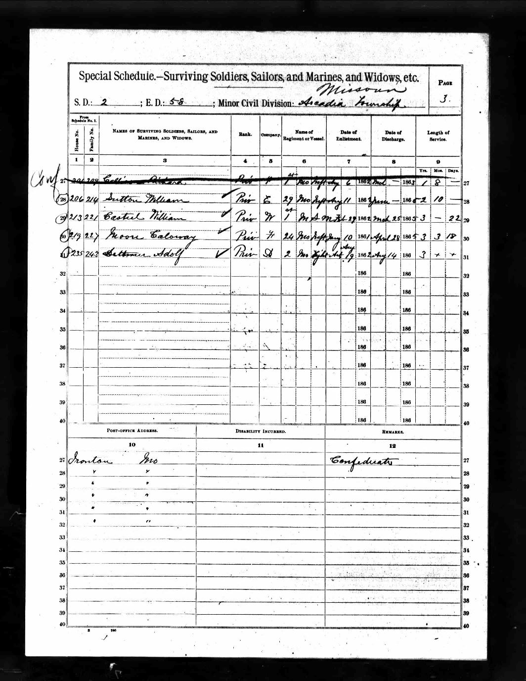 Collison, Richard, (Marked through "Confederate") 1st MO Inf. Found on Ironton/Arcadia Township Page 3