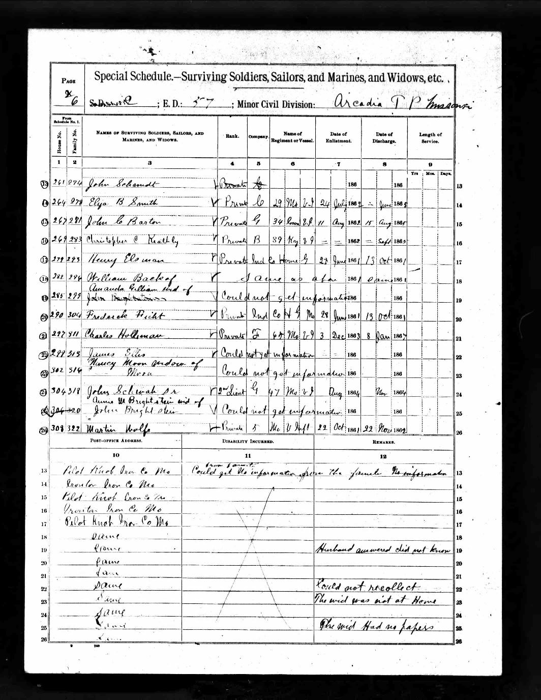 Schmidt (Schmadt ??), John, No Unit Given. Found on Pilot Knob/Arcadia Township Page 2