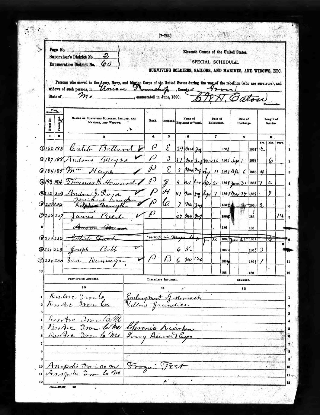 Ballard, Caleb, 29 MO Inf. Found on Union Township Page 2