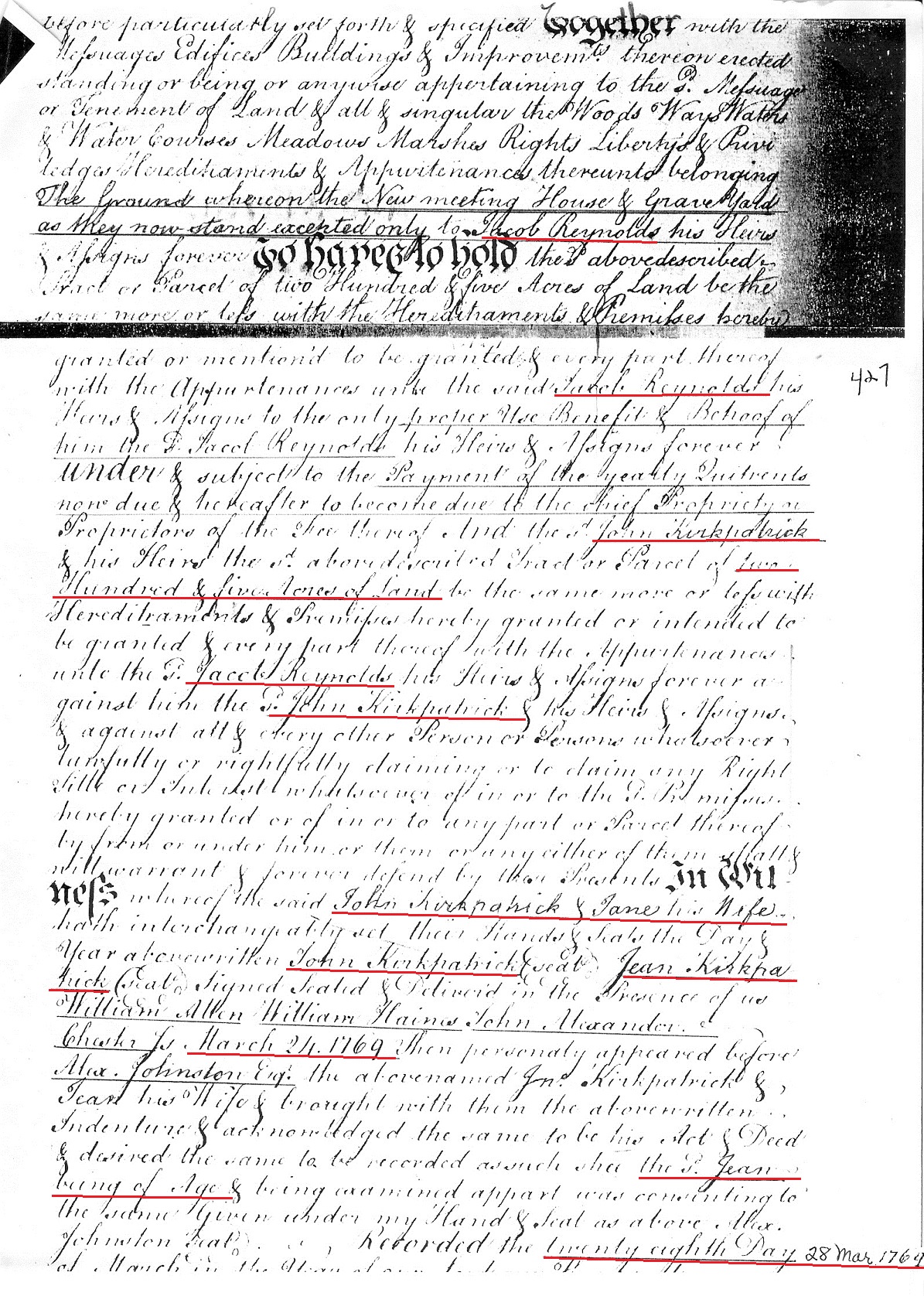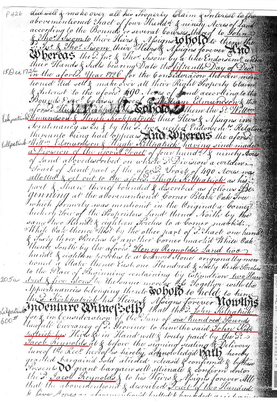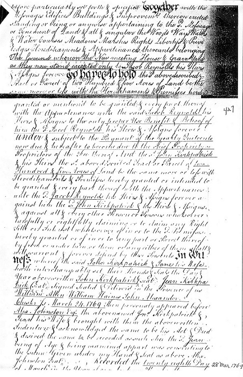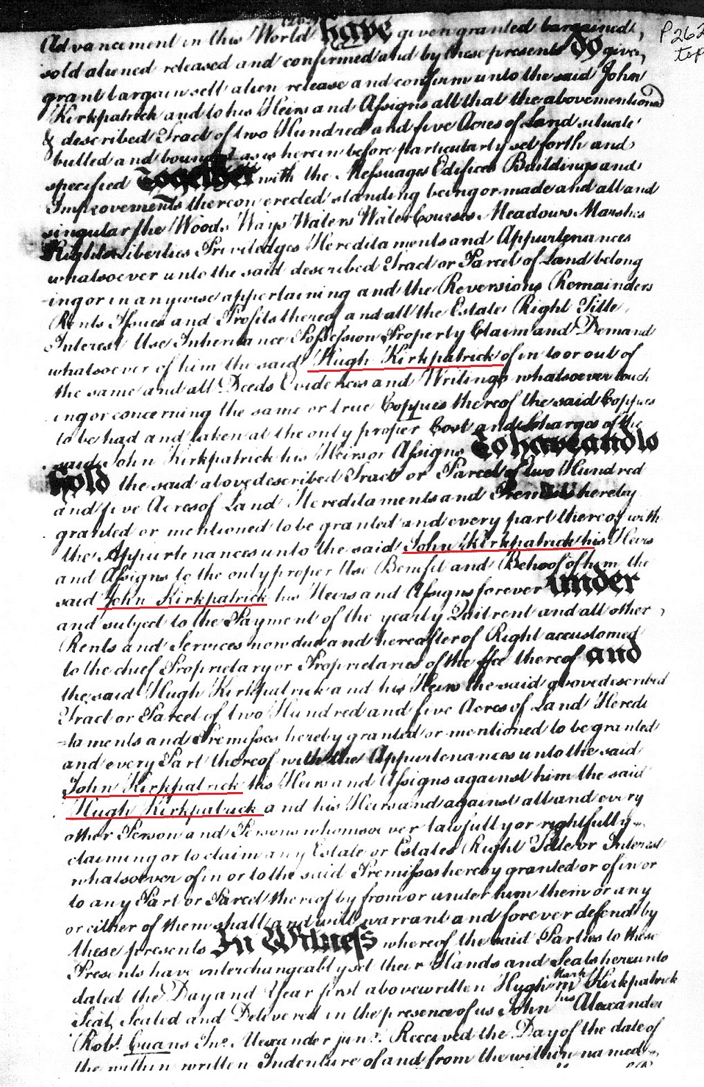 And lastly we have where Hugh's son John (Hugh) Kirkpatrick and daughter-in-law Jane / Jean sell this same land.